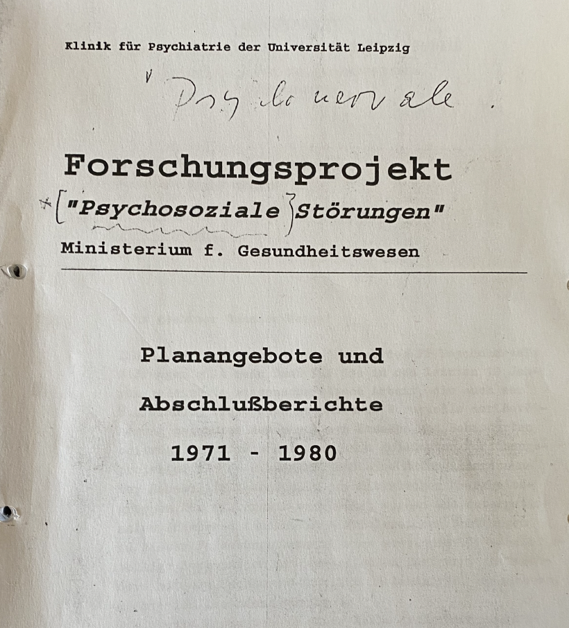 Der internationalen Entwicklung im Kontext der Psychopharmakoforschung folgend, zeigte sich Ende der 1960er Jahre ein erneuter Trend der Biologisierung der Psychiatrie in der DDR. Ziel war es, biochemische, neurobiologische und neurophysiologische Forschungen schneller und gezielter in Anwendung zu bringen. Dazu schien es u. a. notwendig, verstärkt auf die Epidemiologie psychischer Störungen zu achten. Neben naturwissenschaftlichen Konzepten rückten somit auch Methoden zur Erfassung psychologischer und gesellschaftlicher Bedingungen psychischer Krankheiten in den Fokus. Eine einseitig naturwissenschaftliche Interpretation ihrer Ursachen wurde damit aufgegeben. Das bedeutete zugleich die Notwendigkeit eines einheitlichen ideologischen Bezugsrahmens. Mit dem vom Gesundheitsministerium 1969 ins Leben gerufenen Forschungsprojekt „Psychonervale Störungen“ sollten Modelle zur Verbesserung von Struktur und Funktion der territorialen und betrieblichen Versorgung unter besonderer Berücksichtigung der halbklinischen und ambulanten Betreuung entwickelt werden. Zudem galt es, unter Bezugnahme auf psycho- und soziotherapeutische Methoden die psychopharmakologische Behandlung zu optimieren und Variablen psychotherapeutischer Prozesse zu untersuchen. Die langfristige Erarbeitung marxistisch-leninistischer Grundlagen für Hauptprobleme des psychiatrischen Fachgebietes bildete die ideologische Klammer und zugleich Voraussetzung für die Überführung „westlicher“ psychiatrischer und psychotherapeutischer Konzepte in „sozialistische Behandlungsstrategien“.