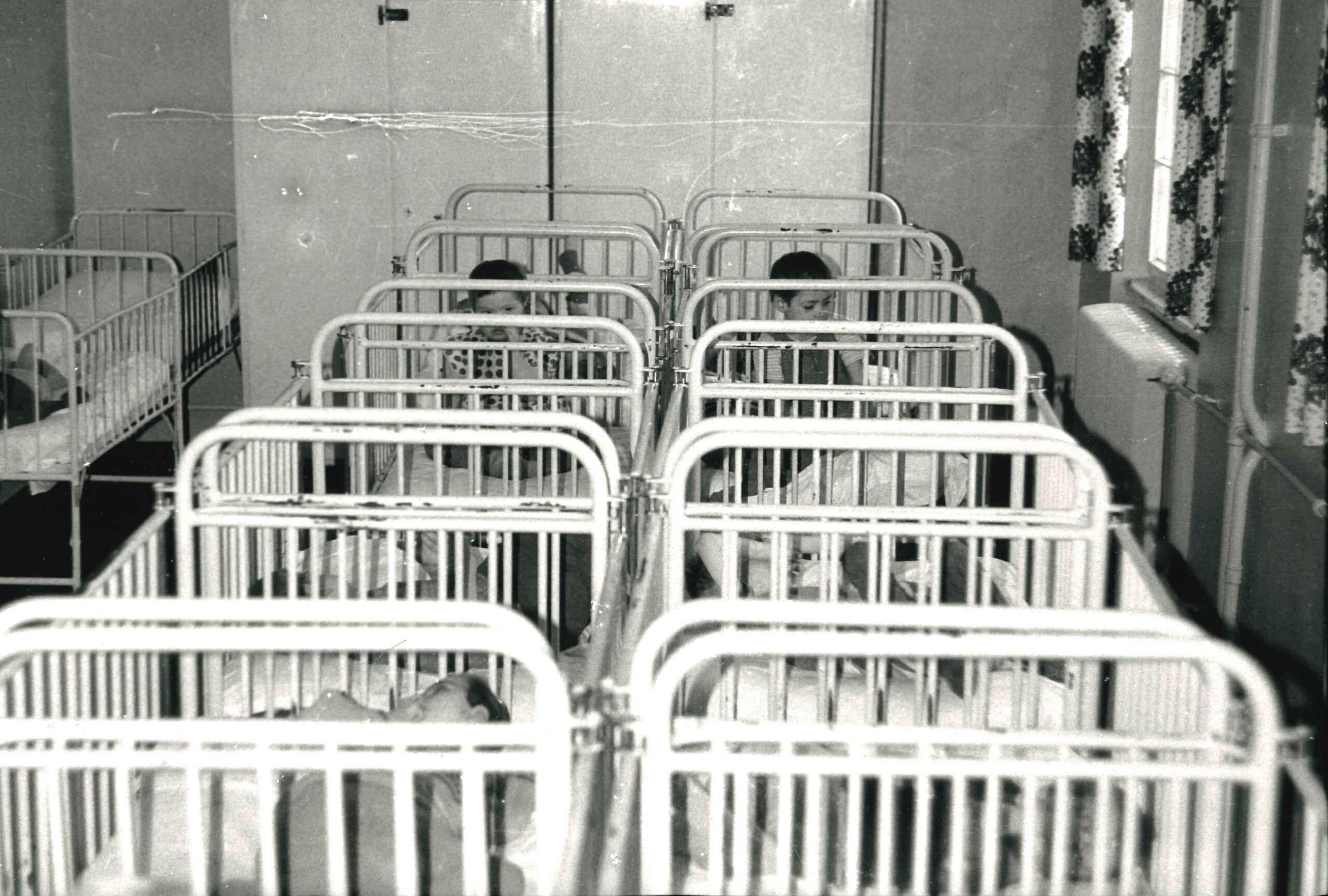 Aneinanderreihung von Kinderbetten in der Ueckermünder Klinik, Quelle: HAUEM.