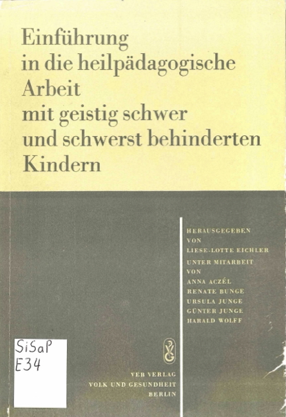 Eichler, Liese-Lotte (Hg.): Einführung in die heilpädagogische Arbeit mit geistig schwer und schwerst behinderten Kindern: unter Anlehnung an die ungarische heilpädagogische Arbeit (nach Dr. Gustav Bárczi), Berlin 1967.