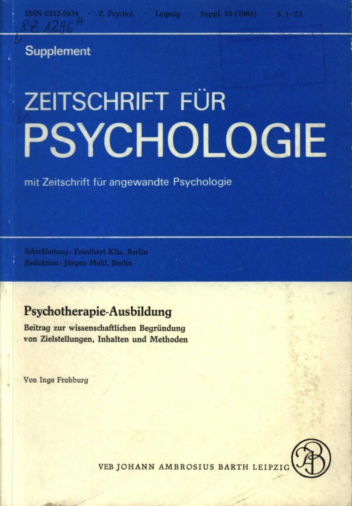 Frohburg, I. (1988). Psychotherapie-Ausbildung. Beitrag zur wissenschaftlichen Begründung von Zielstellungen, Inhalten und Methoden. Z. Psychol. Suppl. 10.