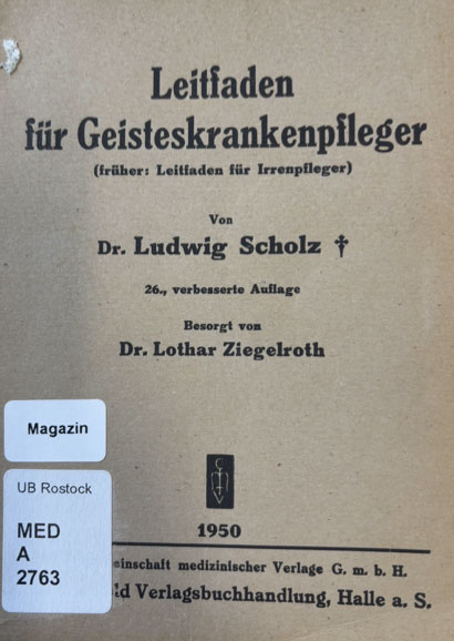 Scholz Ludwig, Leitfaden für Geisteskrankenpfleger. 26. Aufl. Halle: Marhold; 1950
